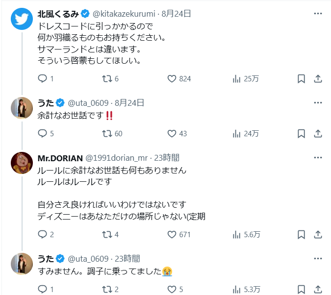 ディズニーランドやディズニーシーでの「下着ディズニー」と呼ばれる露出度の高い服装が、X上で大きな議論を巻き起こしています。