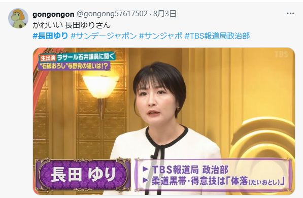 TBS報道局政治部で活躍する長田ゆりさんが、広末涼子さんに似ていると話題です。