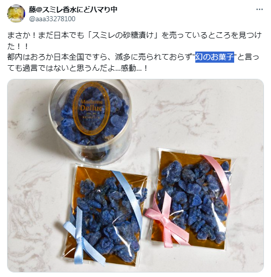 スミレの砂糖漬けは、日本の実店舗で購入するのは難しい状況です。