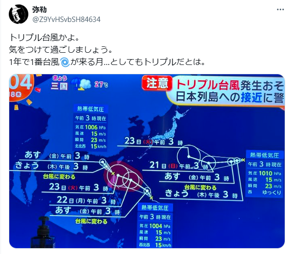 2025年9月、トリプル台風(17号、18号、19号)が日本に接近中です。