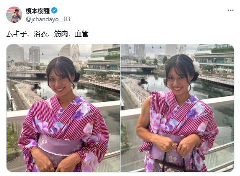 対象となった記事は、「『めくらないで…』24歳陸上選手、浴衣からのぞく〝驚愕の肩〟に反響!『ギャップが素敵』『浴衣いいね♡』」というタイトルで、榎本さんの投稿「ムキ子、浴衣、筋肉、血管」を引用。